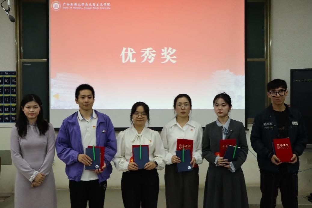 评委们根据选手们的演讲内容、语言表达、仪态风度等多个方面进行了综合评分,蒋思瑜、黄筱勤获得一等奖,刘业光、但青青、于璐获得二等奖,曹雅萱、朱甜、何欣欣获得三等奖,段秋霞、王鹏、杨小霈、黄计鹏、覃东远获得优秀奖。