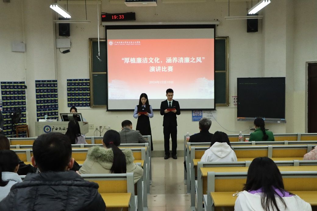 比赛过程中,参赛选手们紧扣主题,从不同角度阐述对廉洁文化的理解与感悟。他们以古往今来的廉洁典范事迹为切入点,讲述廉洁自律在个人成长与社会发展中的重要性;结合当下社会热点话题,剖析廉洁文化在新时代的内涵与价值,鼓励同学们从自身做起,树立正确的价值观和道德观,以实际行动践行廉洁精神。